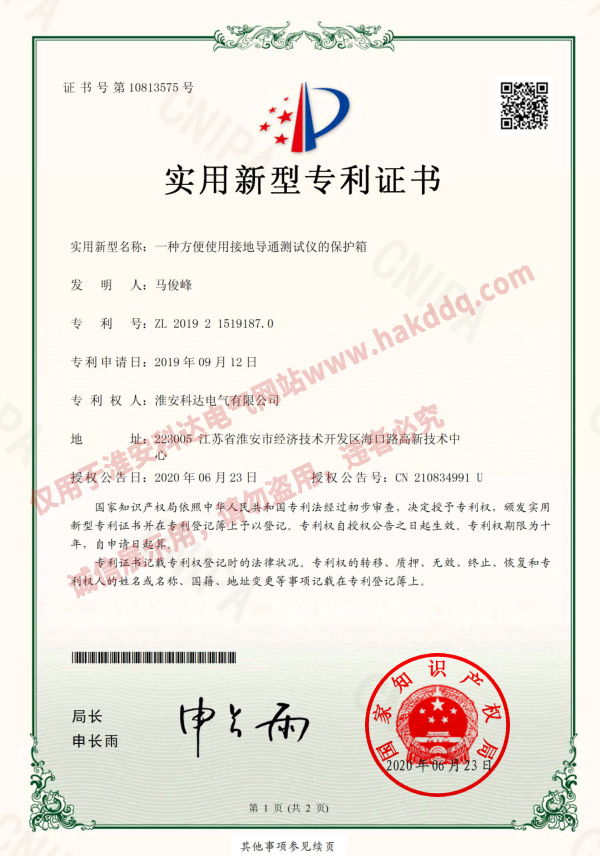 接地導(dǎo)通測試儀專利證書