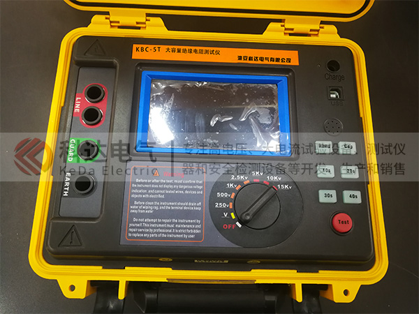 KBC-5T大容量絕緣電阻測(cè)試儀是我公司精心研發(fā)的一款大容量絕緣電阻測(cè)試儀,儀器擁有完善的各種絕緣電阻參數(shù)測(cè)試功能和卓越的抗干擾能力,能用于變電站等有強(qiáng)感應(yīng)電環(huán)境下特高壓、大容量高壓電氣設(shè)備、輸電線(xiàn)路絕緣電阻的測(cè)試。儀器采用真彩觸摸屏,所有測(cè)試數(shù)據(jù)及電池電量同屏顯示一目了然,旋鈕開(kāi)關(guān)和按鍵組合使得操作非常簡(jiǎn)單。儀器內(nèi)置了使用說(shuō)明書(shū),用戶(hù)無(wú)需費(fèi)力記憶操作方法,點(diǎn)擊屏幕的“HELP”即可彈出操作方法,有效指引用戶(hù)操作儀器。儀器具有快速放電功能并自動(dòng)監(jiān)測(cè)被測(cè)物帶電電壓,電壓超過(guò)36V自動(dòng)禁止測(cè)試有效保護(hù)儀器和操作人員。